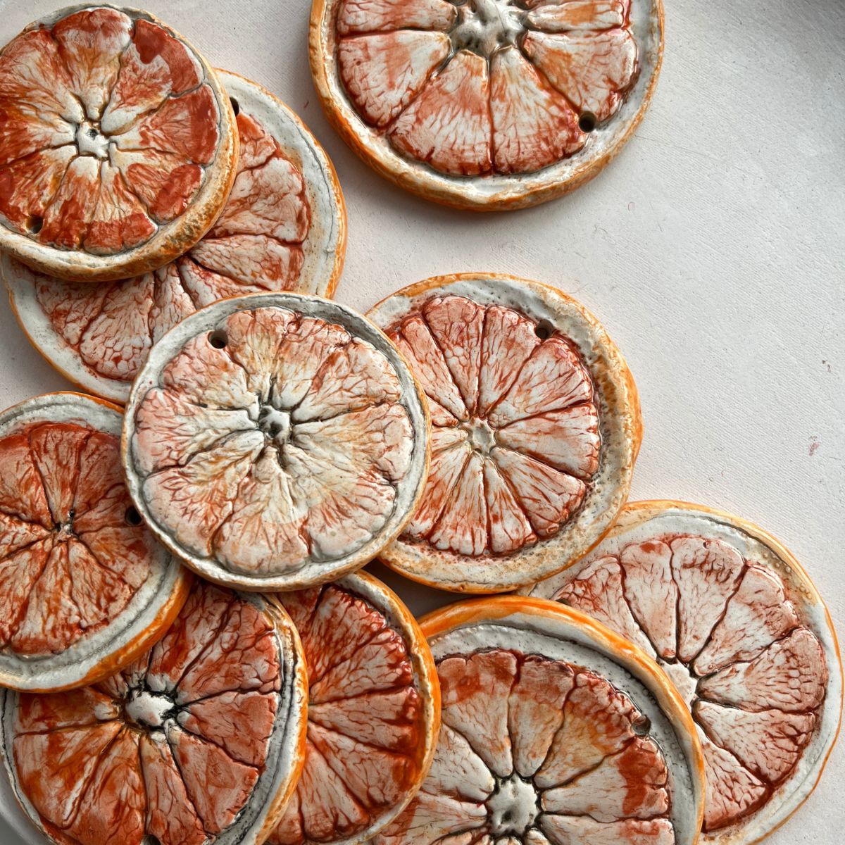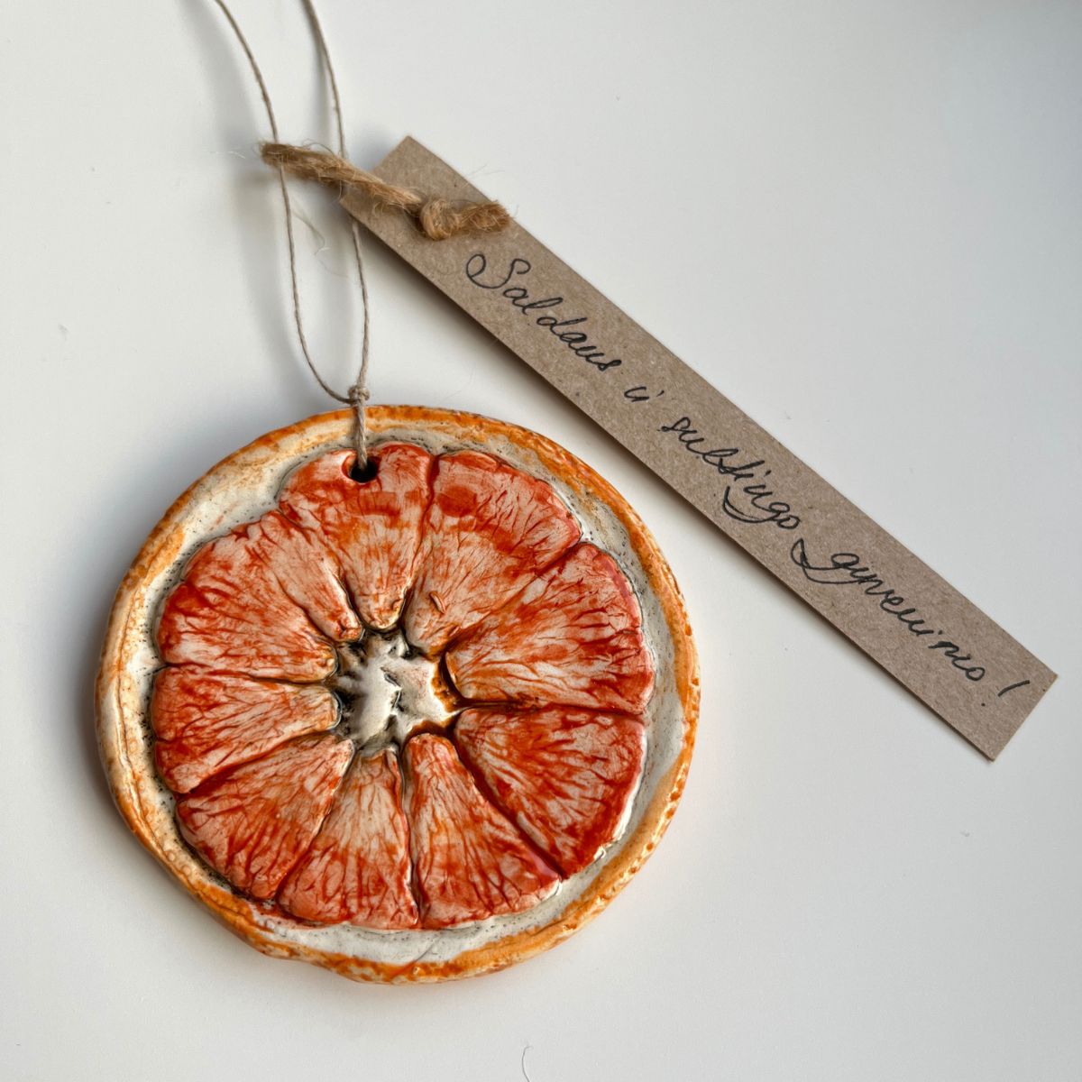 Keramikinis eglutės žaisliukas Apelsinas yra rankų darbo dekoracija, glazūruota taip, kad primintų tikrą, sultingą citrusą. Kiekvieno žaisliuko spalvos tonai, paviršiaus raštas ir dydis šiek tiek skiriasi, todėl kiekvienas gaminys turi savo charakterį.