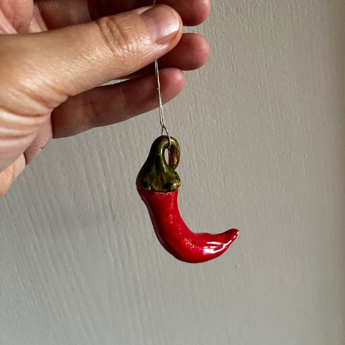 Keramikinis eglutės žaisliukas Čili – ugningas ir ryškus akcentas jūsų šventinei eglutei. Kiekvienas žaisliukas lipdomas ir glazūruojamas rankomis, todėl nėra dviejų identiškų. Visi skiriasi forma, linkiu, dydžiu ir glazūros tonais, dėl to kiekvienas žaisliukas yra savitas ir išskirtinis..